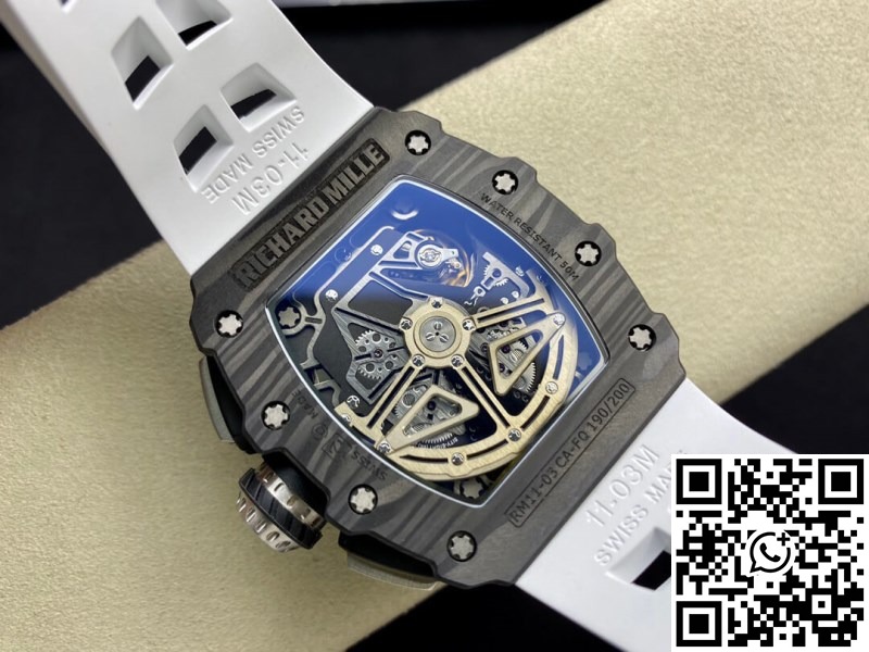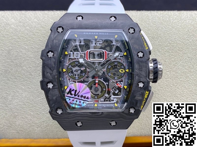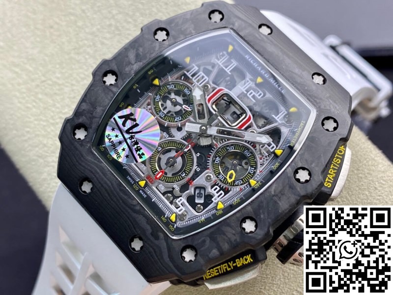 Replica Richard Mille RM011-03 1:1 Best Edition KV Factory Carbon Fiber White Strap