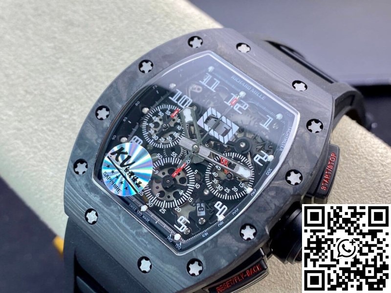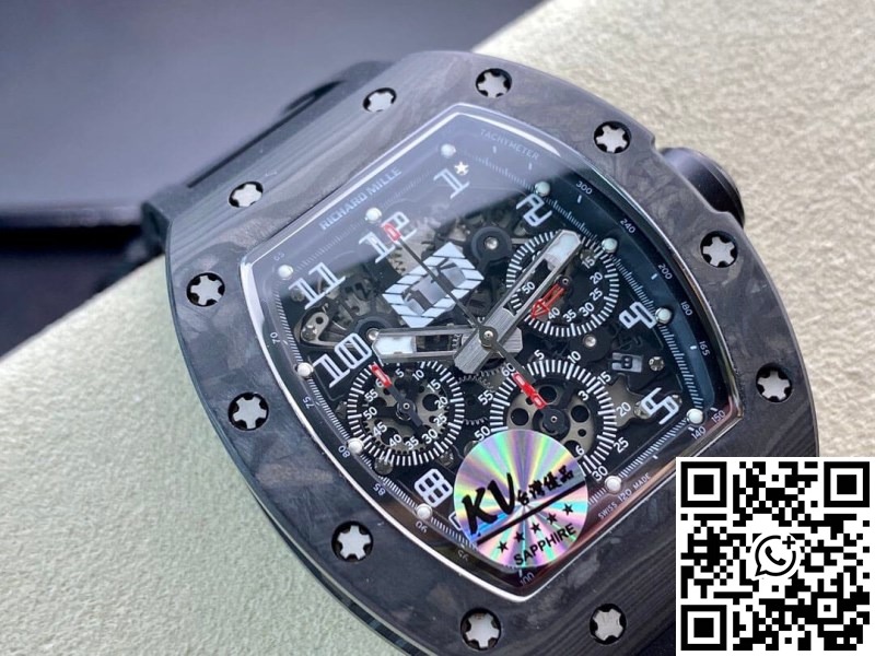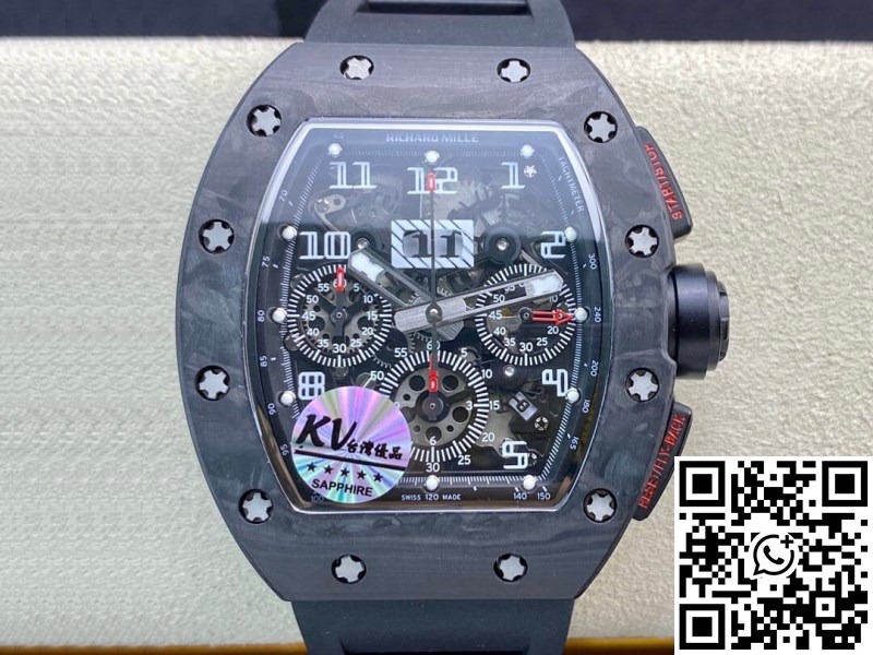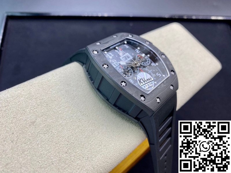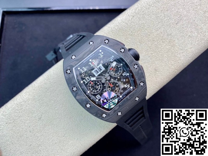 Replica Richard Mille RM011 1:1 Best Edition KV Factory Carbon Fiber Black Rubber Strap