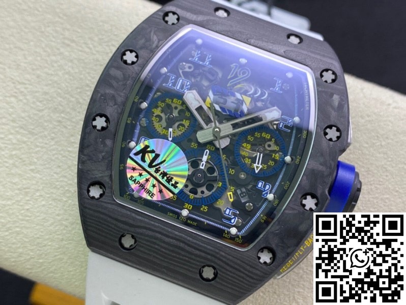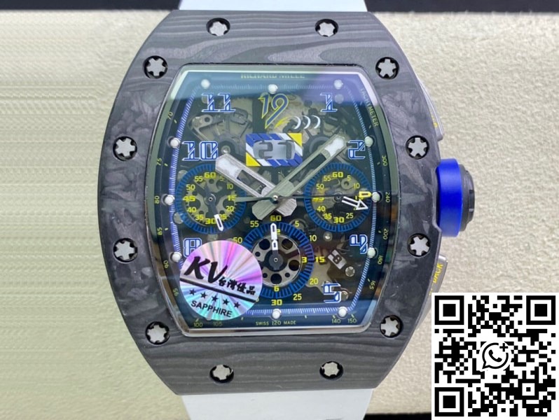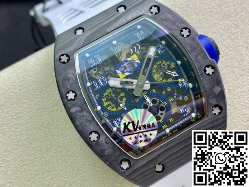 Replica Richard Mille RM011 1:1 Best Edition KV Factory Carbon Fiber White Strap
