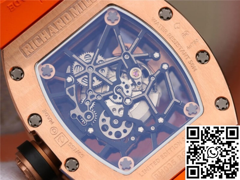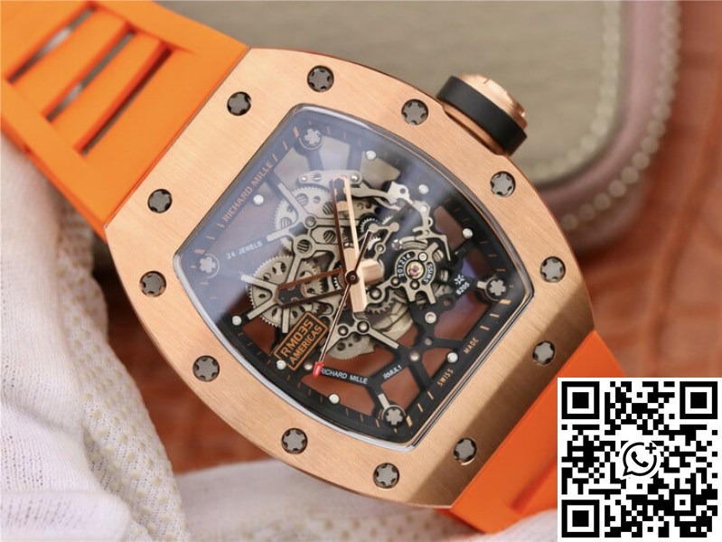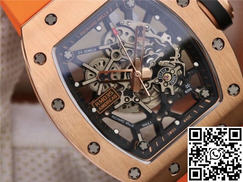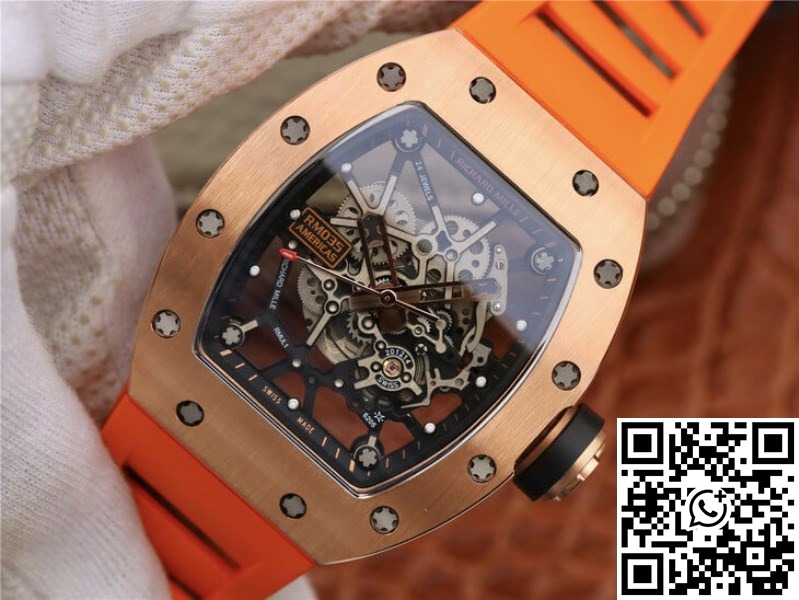 This Richard Mille RM035 Orange Strap | UK Replica ā 1:1 best edition replica watches store, high quality fake watches is taken in kind, truthfully described, reasonable price, guaranteed value, value is greater than price, if you are an extreme perfectionist, it is recommended not to buy. All of our products can only guarantee the value of this price. Weak profit, so please be sure to choose a suitable style and buy rationally. If you need to return or exchange the replica watch due to the quality problems, please ensure the packaging is the same as the packaging we sent, make sure that the replica watch is not worn and without any damage.
