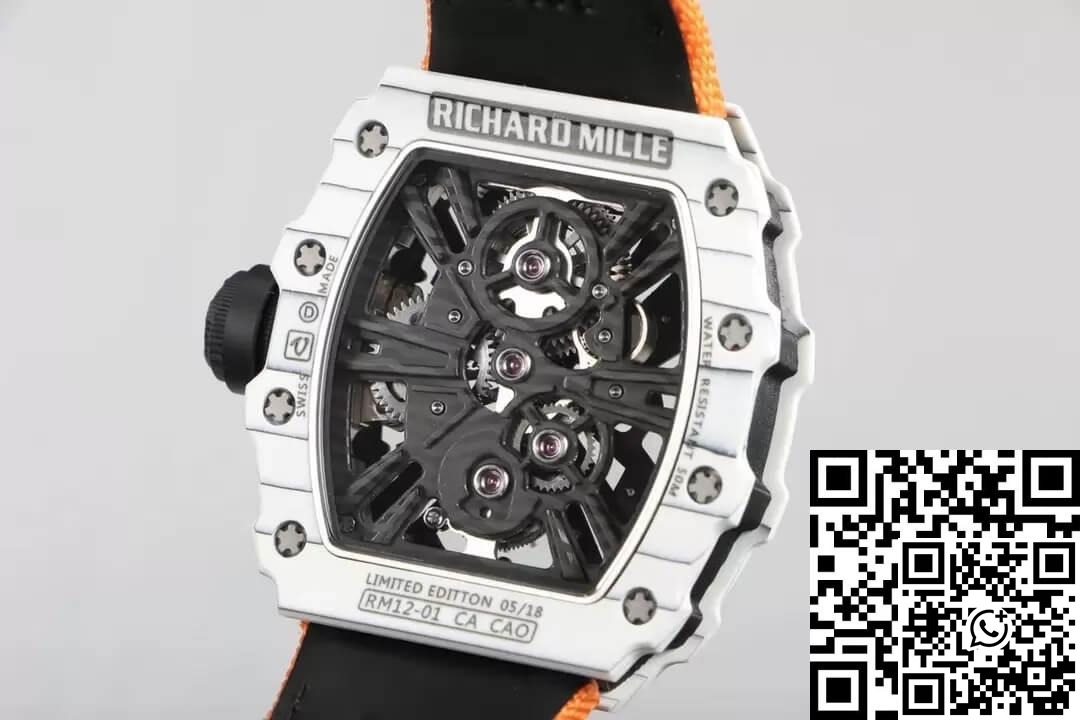 Replica Richard Mille RM12-01 Tourbillon 1:1 Best Edition RM Factory Carbon Fiber Case Orange Strap