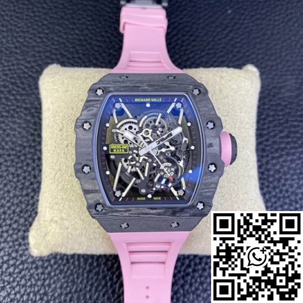 Replica Richard Mille RM35-02 1:1 Best Edition T+ Factory NTPT Carbon Fiber Pink Rubber Strap