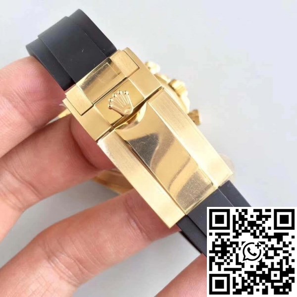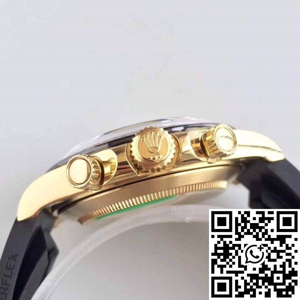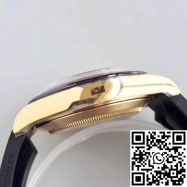 | Strap : | Black rubber strap with New style flip-lock clasp with polished Rollie crown logo (The Best Clasp). Polished inner clasp and black ceramic spring balls same as genuine rolex version. |