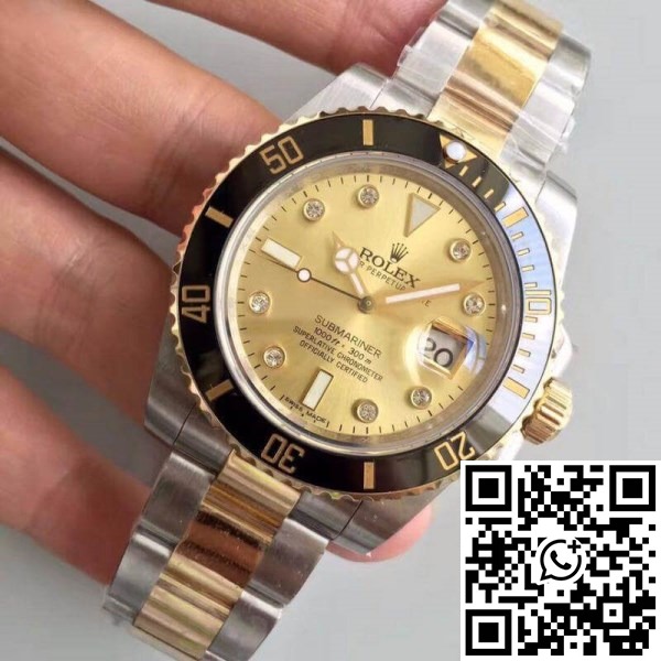 Replica Rolex Submariner Date 116613LN Noob Factory 1:1 Best Edition Swiss ETA3135 Gold Wrapped Gold Dial